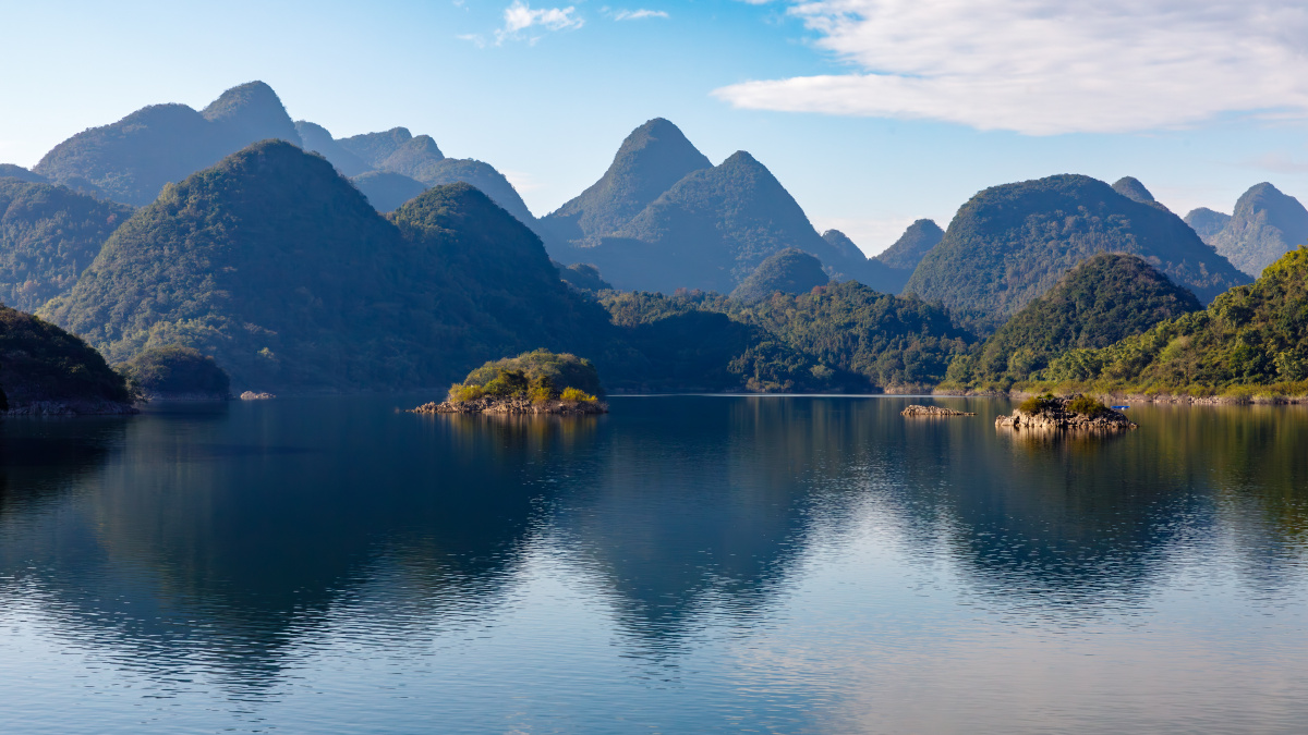 清远。桃花湖。山水画